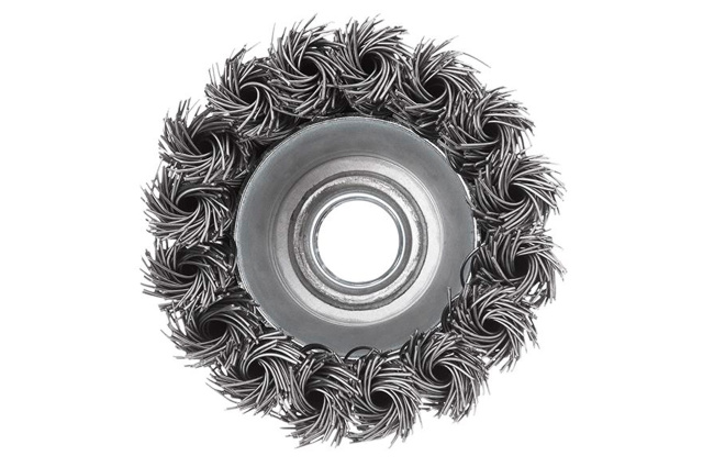 Щетка торцевая (чашечная) с плетеной проволокой для УШМ. Предназначена для работ по дереву, бетону, металлу и лакокрасочным покрытиям. Диаметр 65 мм. Скорость вращения: 12500 об/мин. Тип проволоки: плетенная проволока; Скорость вращения: 12500 об/мин; Диаметр щетки: 65 мм; Диаметр проволоки: 0,5 мм; Держатель: М14; Применение: для дерева, бетона, металла и лакокрасочных покрытий