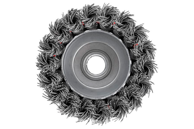 Щетка торцевая (чашечная) с плетеной проволокой для УШМ. Предназначена для работ по дереву, бетону, металлу и лакокрасочным покрытиям. Диаметр 75 мм. Скорость вращения: 12500 об/мин. Тип проволоки: плетенная проволока; Скорость вращения: 12500 об/мин; Диаметр щетки: 75 мм; Диаметр проволоки: 0,5 мм; Держатель: М14; Применение: для дерева, бетона, металла и лакокрасочных покрытий