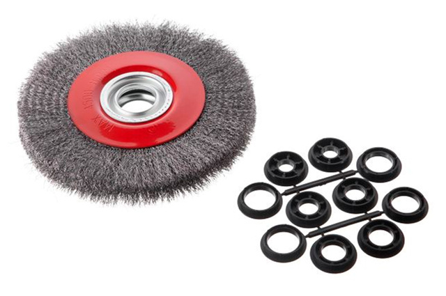 Щетка дисковая с рифленной проволокой. Предназначена для работ по дереву, бетону, металлу и лакокрасочным покрытиям при оборотах не более 4500 об/мин. Диаметр щетки 200 мм, посадочного отверстия - 32 мм. Тип проволоки: рифленная проволока; Скорость вращения: 4500 об/мин; Диаметр щетки: 200 мм; Диаметр проволоки: 0,3 мм; Диаметр посадочного отверстия: 32 мм; Применение: для дерева, бетона, металла и лакокрасочных покрытий