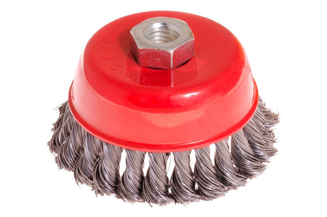 Щетка торцевая (чашечная) с плетеной проволокой для УШМ. Предназначена для работ по дереву, бетону, металлу и лакокрасочным покрытиям. Диаметр 100 мм. Скорость вращения: 8500 об/мин