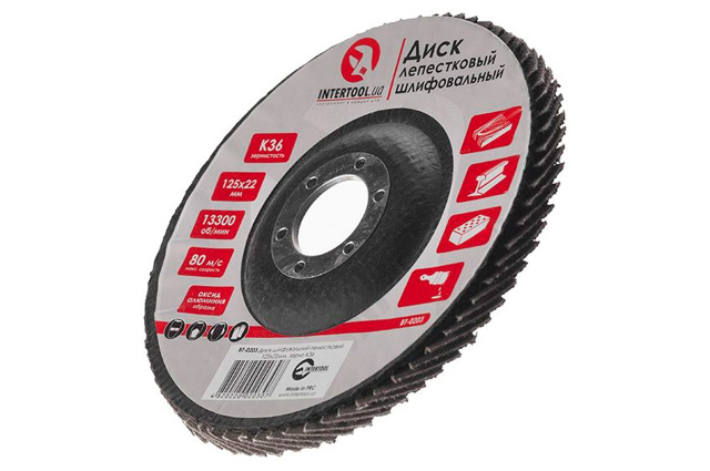 Диск шлифовальный лепестковый торцевой подходит для применения с УШМ. Используется в работах по шлифованию и полировке изделий из металла, стали, бетона, сухого дерева, лака/краски. Диски с зернистостью от 36 до 40 применяются для предварительного шлифования поверхности. Обеспечивает низкий уровень шума. Абразивное зерно: оксид алюминия. Диаметр круга 125 мм. Диаметр диска: 125 мм; Зернистость: К36; Диаметр посадочного отверстия: 22 мм
