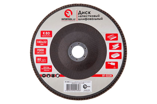 Диск шлифовальный лепестковый торцевой подходит для применения с УШМ. Используется в работах по шлифованию и полировке изделий из металла, стали, бетона, сухого дерева, лака/краски. Обеспечивает низкий уровень шума. Абразивное зерно: оксид алюминия. Диаметр круга 180 мм. Диаметр диска: 180 мм; Зернистость: К80; Диаметр посадочного отверстия: 22 мм