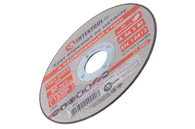 Круг отрезной по металлу Intertool. Максимальная скорость 80 м/с. Максимальное количество оборотов 13300 об/мин. Абразивный материал - оксид алюминия на бакелитовой связке. Применяется для работы с углеродистой сталью. Диаметр круга: 115 мм; Толщина круга: 1,2 мм; Диаметр посадочного отверстия: 22,2 мм