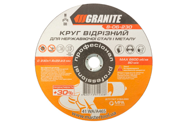Диск отрезной по металлу Granite 230 х 1.6 х 22.2 мм + 30% (8-06-230) (5 шт.)