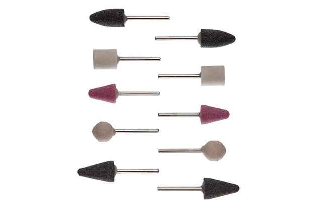 Набор шлифовальных камней в количестве 10 шт. (по 2 шт. каждого вида) применяется для ручных слесарных работ по внутреннему шлифованию, снятию заусенцев и зачистке фасонных поверхностей, где не могут быть применены шлифовальные круги. Область работ: металл, дерево, гранит. Диаметр стержня 3 мм Количество: 10 шт; Диаметр стержня: 3 мм