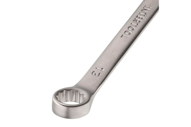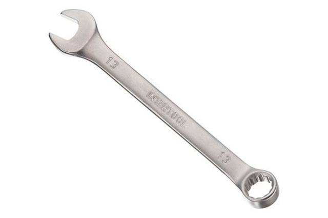 Ключ комбинированный. Это качественное сочетание двух наиболее распространенных видов ключей - гаечного и рожкового. Обе головки имеют одинаковый размер. Ключ изготавливается из легированного хромванадиевого сплава, что обеспечивает высокие эксплуатационные характеристики. Сатин-хромовое покрытие надежно защищает инструмент от коррозии. Размер ключа: 13 мм