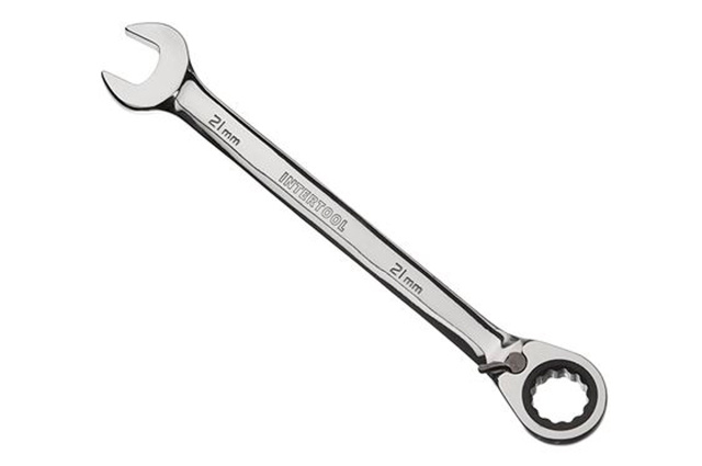 Комбинированный ключ с трещоткой и реверсом, размером 21 мм предназначен для монтажа и демонтажа резьбовых соединений гаек и болтов. Ключ изготовлен из прочной Cr-V стали. Поверхность ключа хромирована и защищает от коррозии, а также поверхность легко очищается от загрязнений.