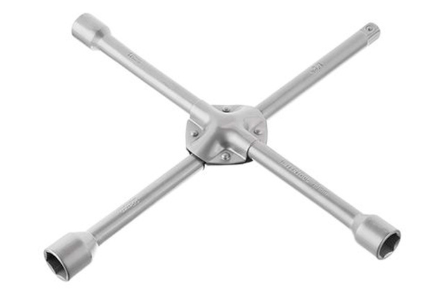 Баллонный крестовой ключ удобный универсальный ключ для монтажа автомобильных колес. Наличие клепаной пластины на крестовине обеспечивает дополнительную прочность и долговечность конструкции ключа. Размеры головок: 17, 19 и 22 мм. У одного основания имеется квадрат на 1/2" для закрепления в нем дополнительной головки любого размера с квадратом 1/2". А общая длина ключа составляет 355 мм. Квадрат: 1/2"; Размер ключа: 355x16 мм