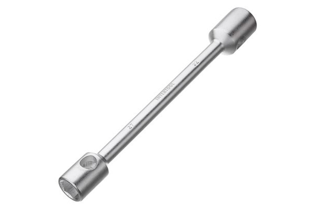 Ключ I-образный с поперечными сквозными отверстиями для воротка. Предназначен для использования при работе с любым шестигранным крепежом. Размер ключа: 27x32 мм