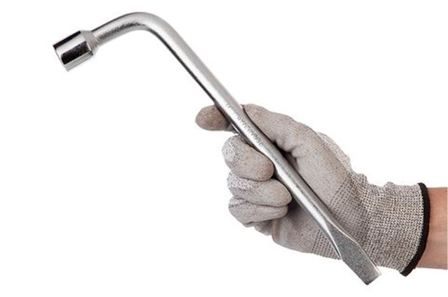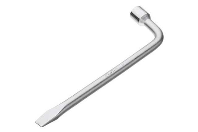 Ключ балонный L-образный. На одном конце шестигранная головка, а другой конец выполнен в виде монтировки. Размер ключа: 17 мм; Длина ключа: 350 мм