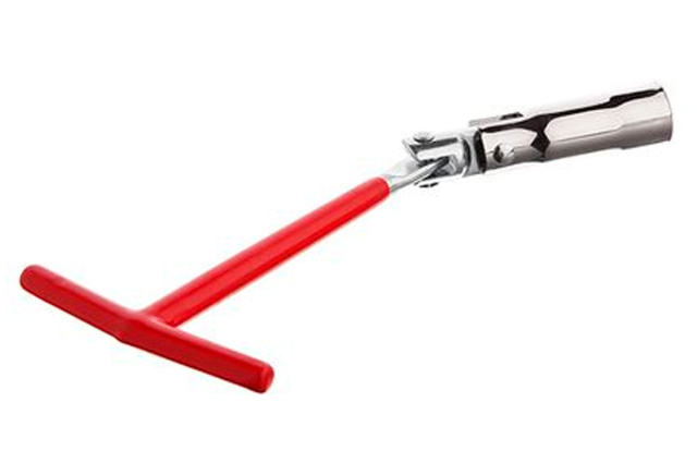 Инструмент применяется при установке и снятии свечей зажигания на машинах с бензиновыми моторами. Имеет Т-образную форму и шарнир.