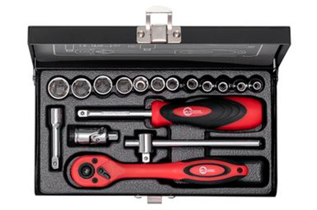 Набор инструментов состоит из 17 инструментов. В состав данного набора входит 12 торцевых головок диаметром от 4 до 13 мм, 1 удлинитель для торцевых головок, 1 карданчик, 1 вороток и 1 ключ с трещоткой. Размер квадрата набора - 1/4". Все инструменты изготовлены из хром-ванадиевой стали, а также имеют специальное антикоррозийное покрытие. Поставляется в удобный и надежном кейсе. Габаритные размеры: 200*110*30 мм; Квадрат: 1/4"; Количество единиц в наборе: 17 ед.; Материал чемодана: пластик