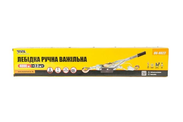 Предназначна для перемещения грузов, при погрузочно-разгрузочных работах. Состоит из металлического корпуса, в котором размещен храповый механизм с приемным барабаном, рычага с рукояткой из пластмассы, крюков с карабинами