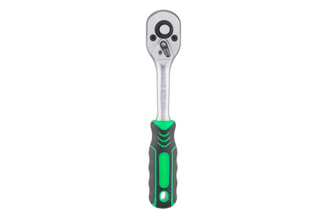 Трещотка изготовлена из закалённой стали с добавлением Cr-V. Выдерживает критические нагрузки и не подвержена появлению коррозии. Храповый механизм в 72 зуба с мелким шагом обеспечит плавный ход и позволит работать трещоткой в самых труднодоступных местах. Трещотка, с посадочным квадратом 1/4", оснащена системой быстрого сброса и фиксации головок. Есть переключатель направления – можно крутить в обе стороны. Удобная ручка с двухкомпонентным покрытием не скользит даже в мокрых или грязных руках. Общая длина: 165 мм; Квадрат: 1/4"