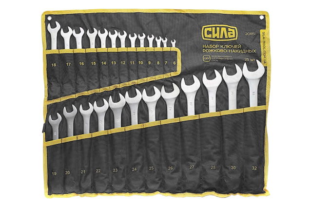 Набор рожково-накидных ключей Сила 25 шт. (6-32 мм) в чехле (201151)