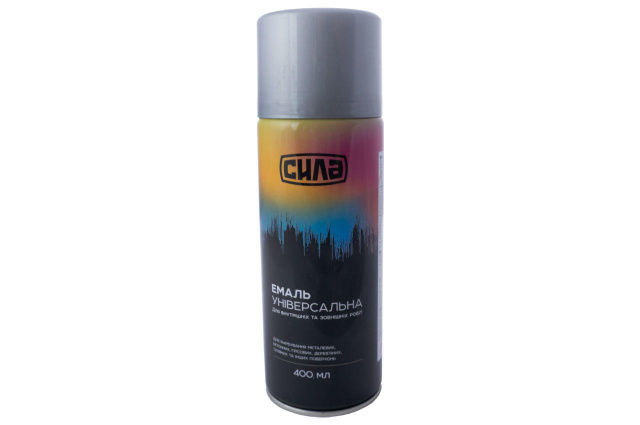Краска аэрозольная Сила - 400 мл RAL 9006 серебристая для покраски металлических, бетонных, гипсовых, деревянных, стеклянных и других поверхностей. Удобна для работы с трафаретами.