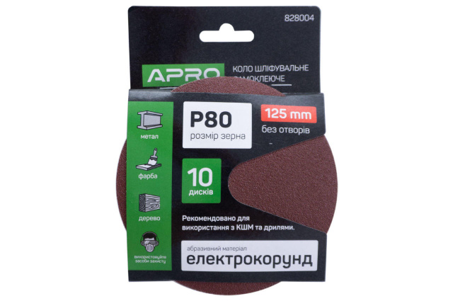 Круг шлифовальный на липучке Apro 125 мм x Р80 (10 шт.) (828004)