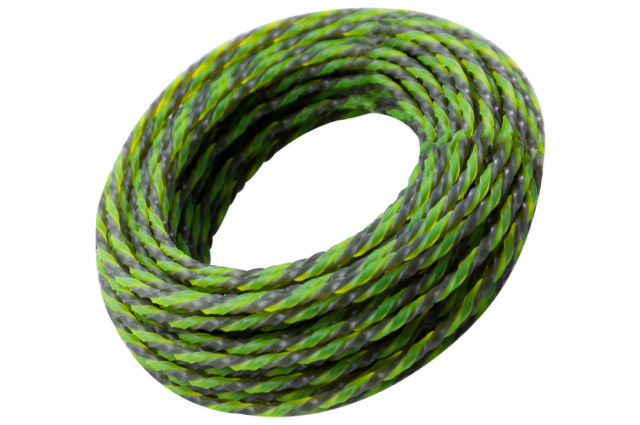 Форма и спиральная канавка жилки уменьшает на 30% громкость неприятных высокочастотных звуков, возникающих при работе. При использовании жилка уменьшает сопротивление воздуха, что позволяет двигателю триммера быстрее развить оптимальные обороты и повышает экономичность устройства. Высокая эластичность и износостойкость к истиранию материала не позволяет концам жилки ломаться и разрыхляться на волокна и обеспечивает большой срок службы. Жилка изготовлена из уникального модифицированного нейлона PA66 (BASF). Бесшумная жилка используется на бензиновых и электрических триммерах любой мощности.