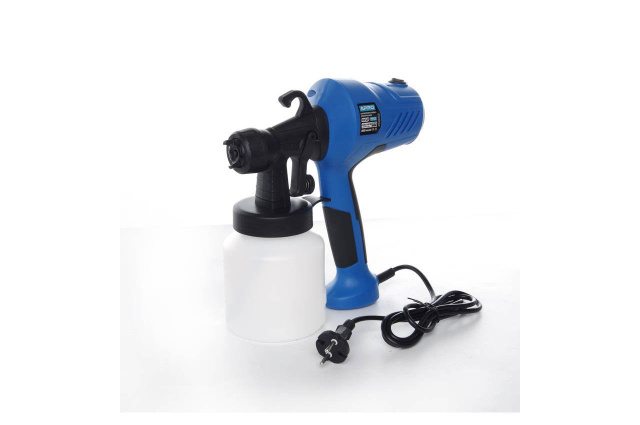 Электрический краскопульт - инструмент, предназначенный для выполнения небольших работ для покраски. Оснащен мощным электродвигателем и является эффективной заменой кисточки или валика, при этом он способен наносить краску более тонким слоем без разводов и потек. Вместительный резервуар изготовлен из легкого, но износостойкого пластика, на который нанесены отметки для обозначения уровня краски. В зависимости от поставленной задачи, можно выбрать один из трех режимов распыления.