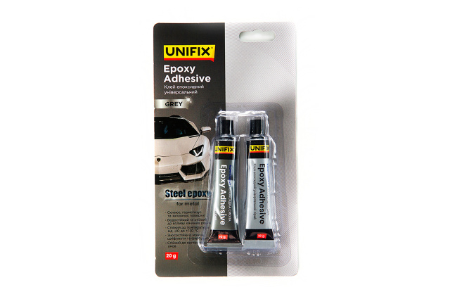 Клей эпоксидный для металла Unifix - 20г тюбик серый. Клей двухкомпонентный эпоксидный является универсальным средством для надежного склеивания различных материалов из дерева, металла, керамики, фарфора.